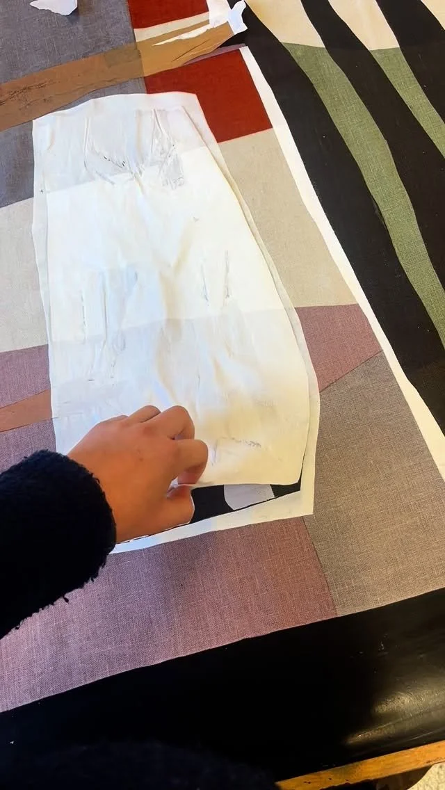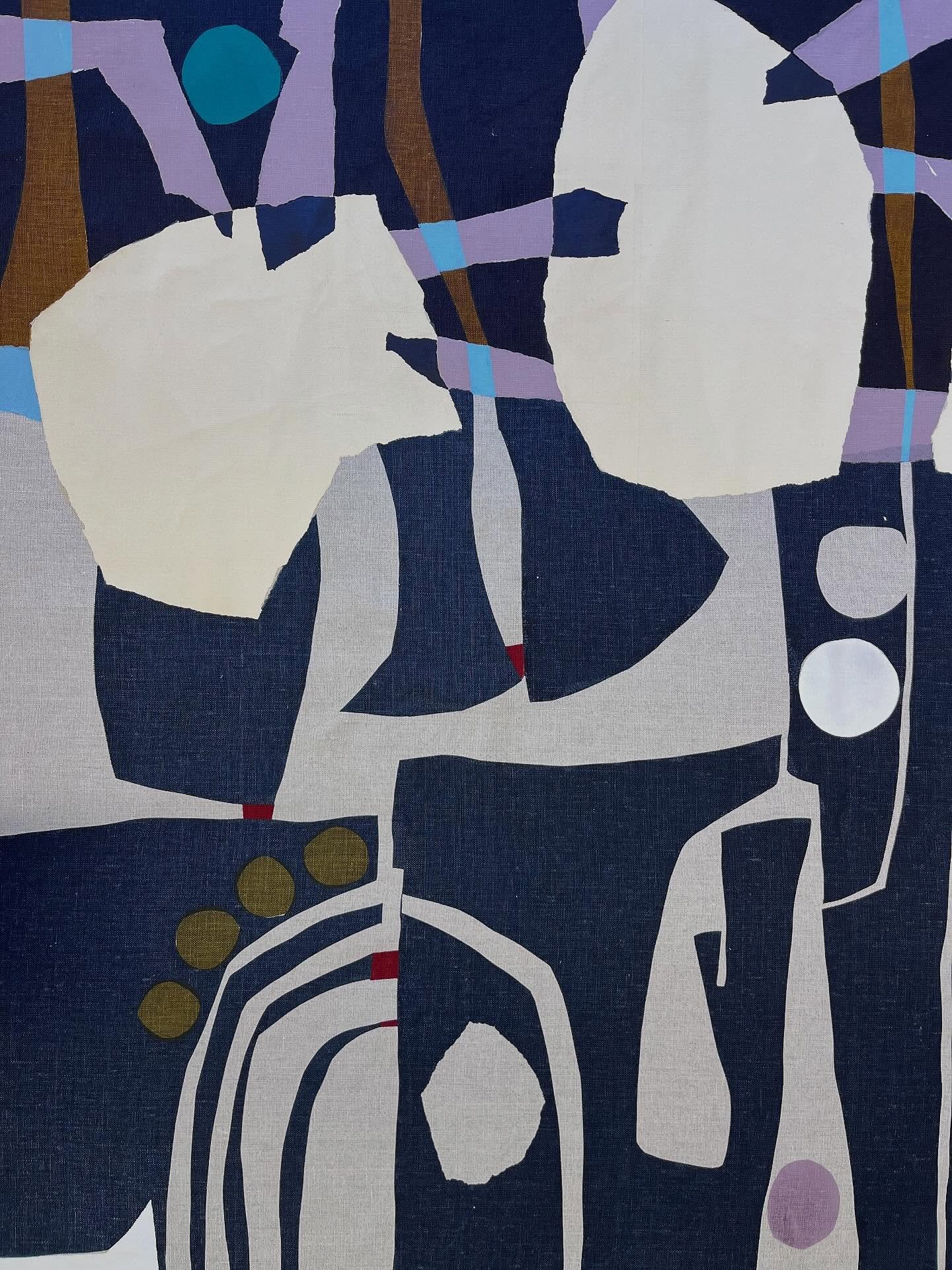 I use a unique screen printing technique to create my wallhangings where shape is individually cut from paper and then printed making each wallhanging completely unique.